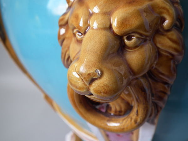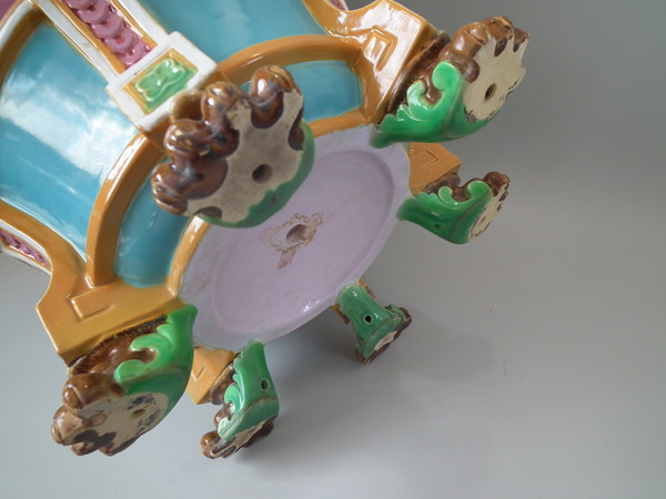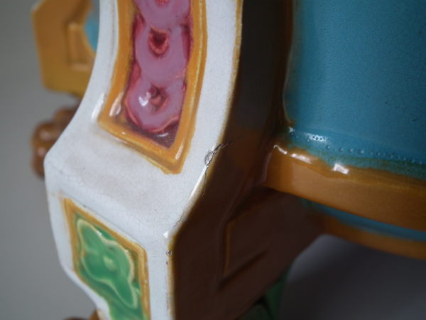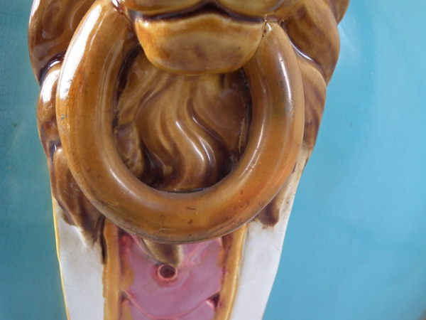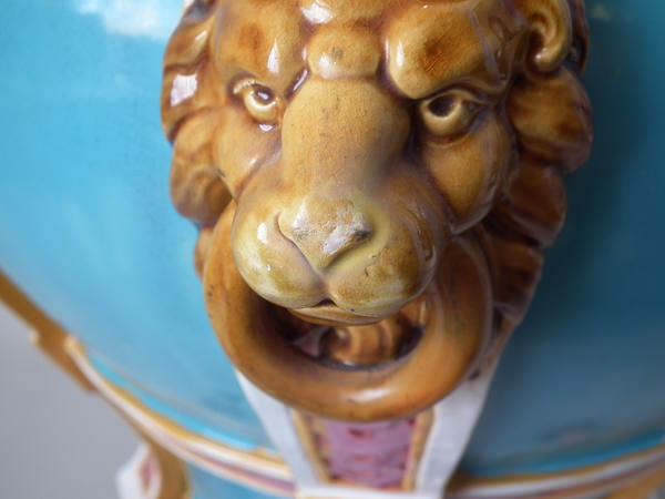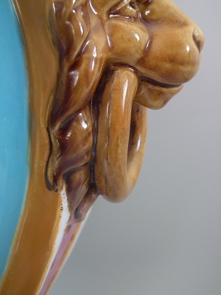 Large Minton Majolica lion mask jardinière