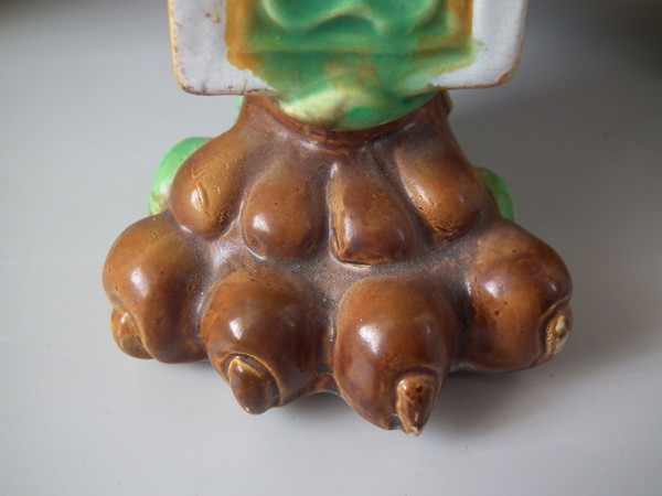 CONDITION: Generally good. Small, shallow chip to white support above one foot and a bruise to another.