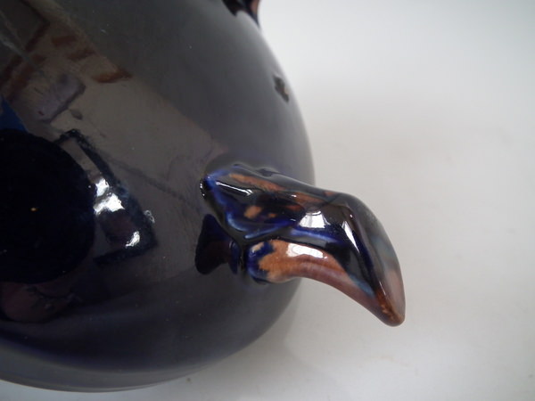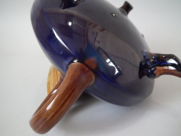 KILN EFFECTS: glaze run to the cobalt blue and brown glazes.