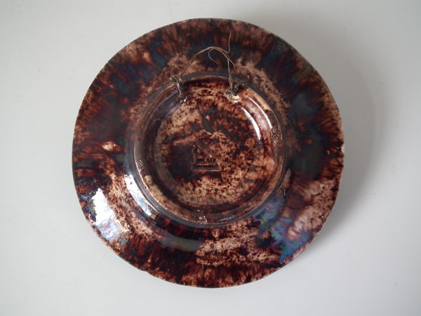 Victorian, circa 1890. 4.7ins high, 4.7ins wide, 2ins depth. Mafra Portuguese Palissy Majolica wall plate
