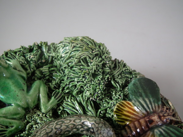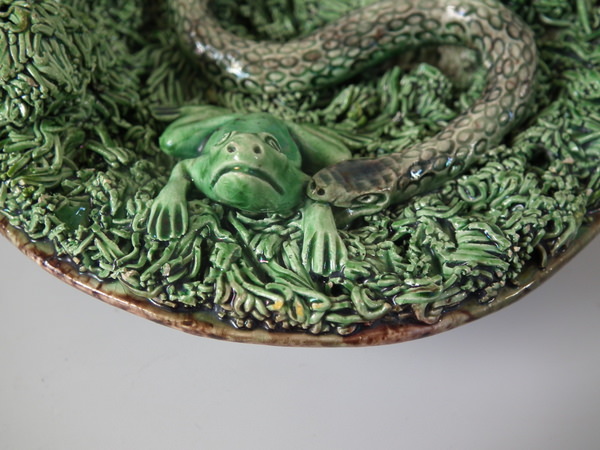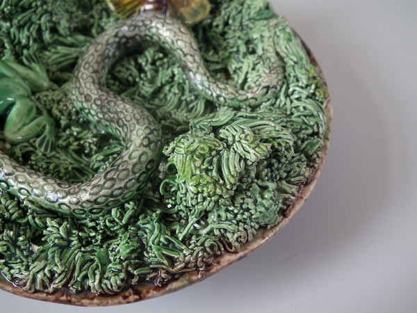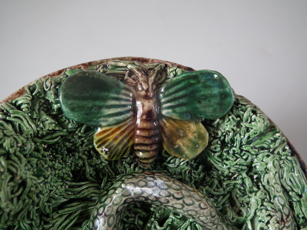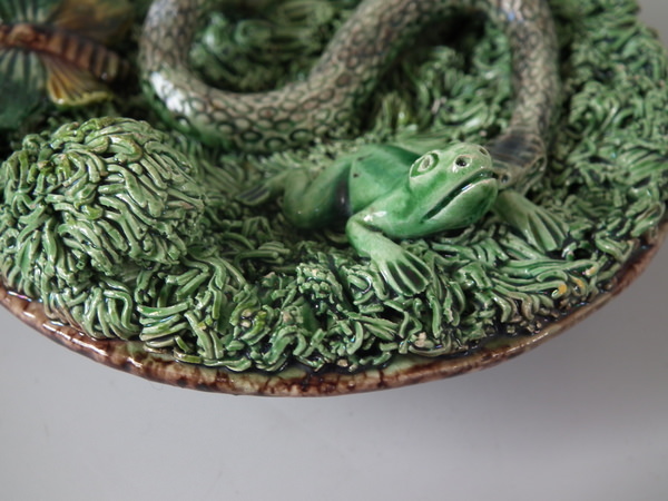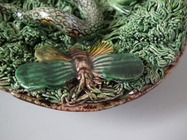 Small Mafra Majolica Palissy snake, moth & frog wall plate