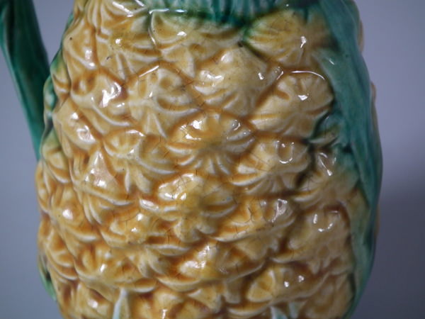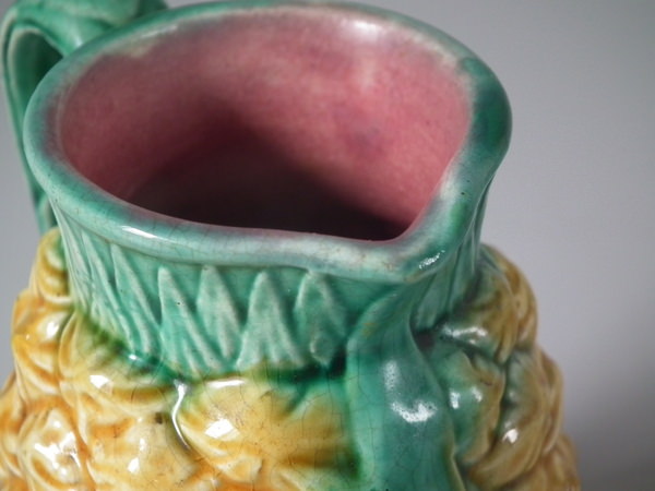 Victorian, circa 1870. 4.4ins high, 3.3ins wide, 3ins depth. Majolica jug/pitcher which features a pineapple.