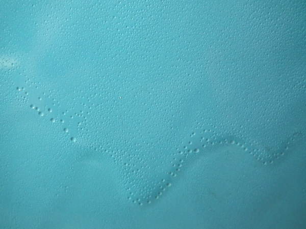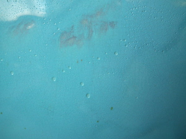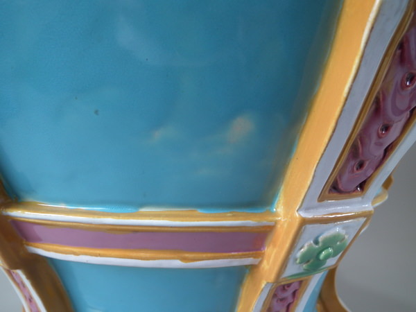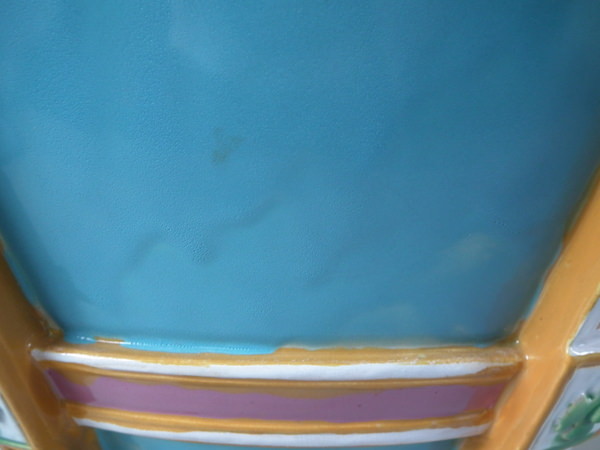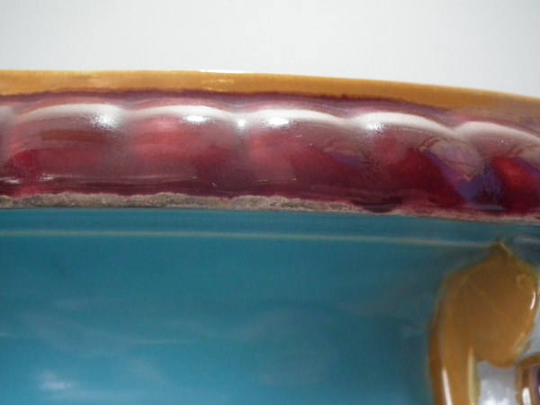 KILN EFFECTS: glaze run and uneven glaze application to turquoise ground;