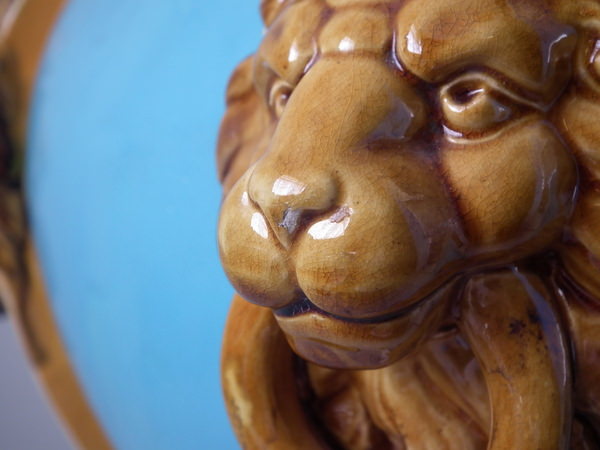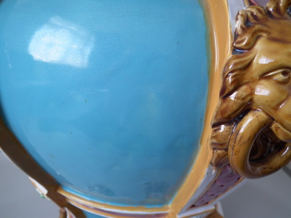 Large Minton Majolica Lion mask jardiniére