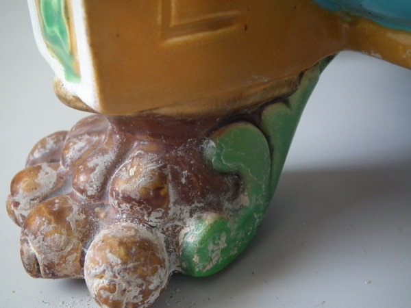 filled chips to underside of one foot,