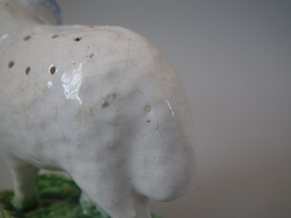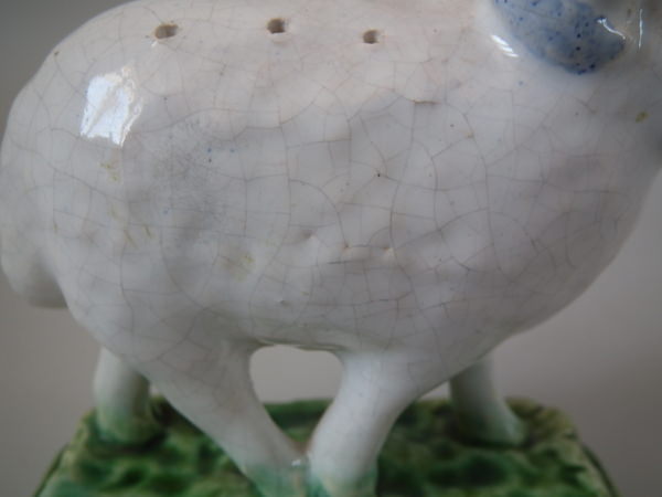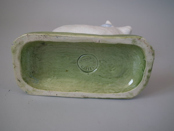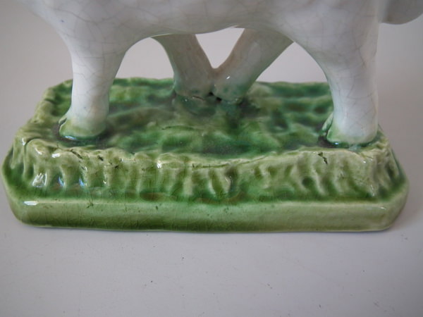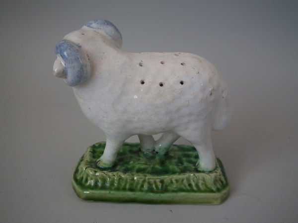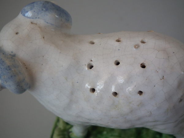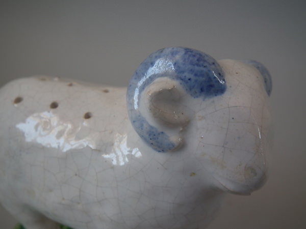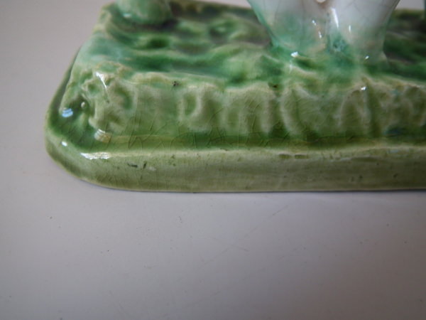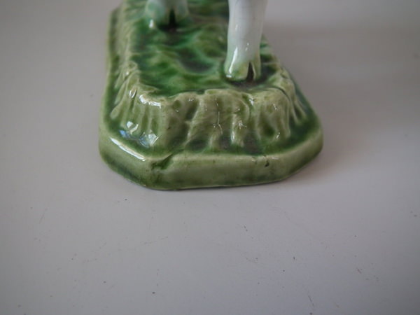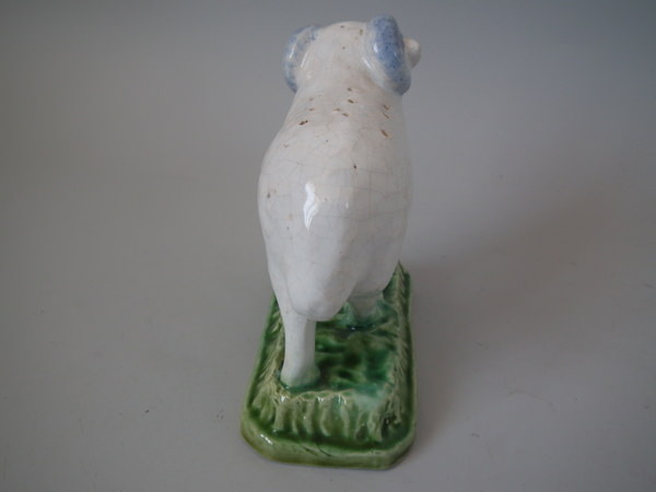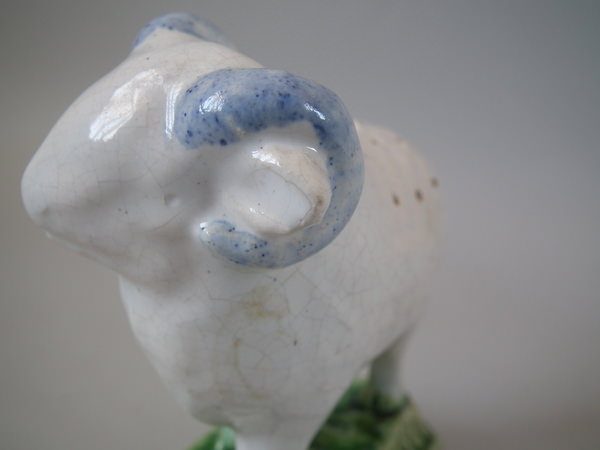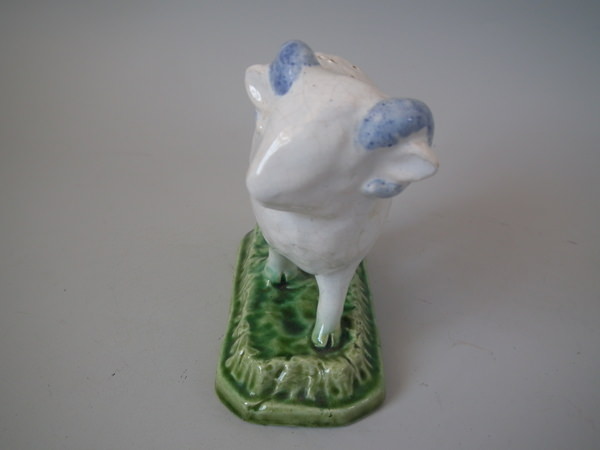 Circa 1890. 4.1ins high, 4.1ins wide, 2ins depth. Angelico Portuguese Palissy Majolica toothpick holder which features a ram.