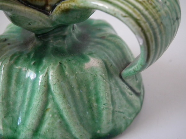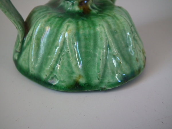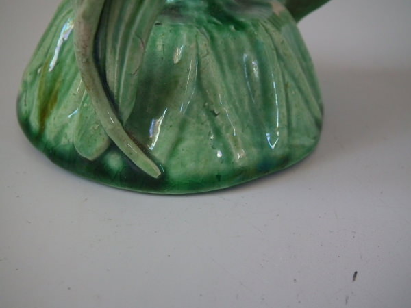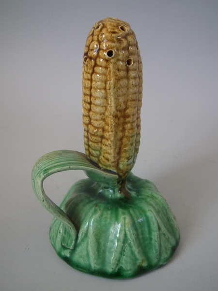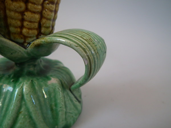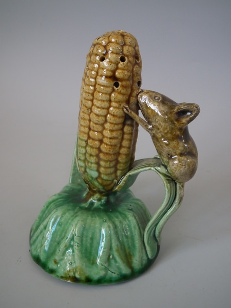 Circa 1890. 4.6ins high, 3.3ins wide, 2.9ins depth. Angelico Portuguese Palissy Majolica toothpick holder which features a mouse resting on a head of corn.