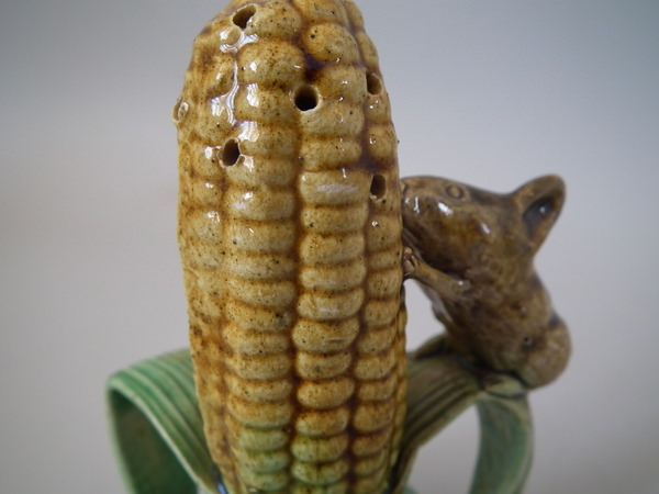 Angelico Majolica Palissy mouse on corn toothpick holder