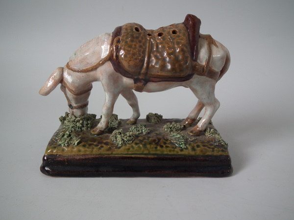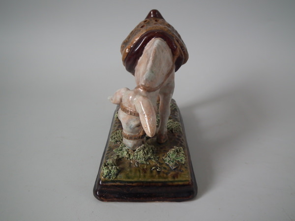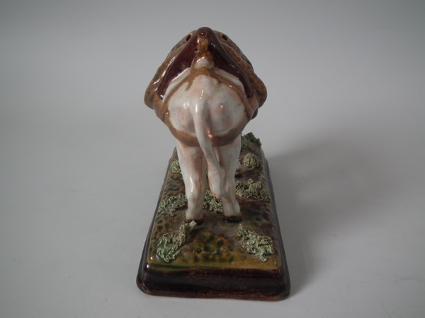 Victorian, circa 1900. 3.5ins high, 2.2ins wide, 4.5ins depth. Bordalo Pinheiro Portuguese Palissy Majolica toothpick holder which features a donkey grazing.