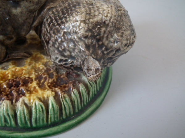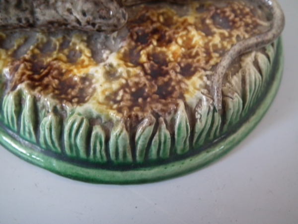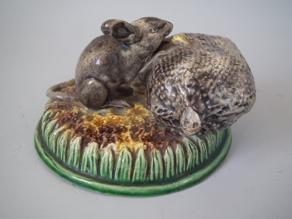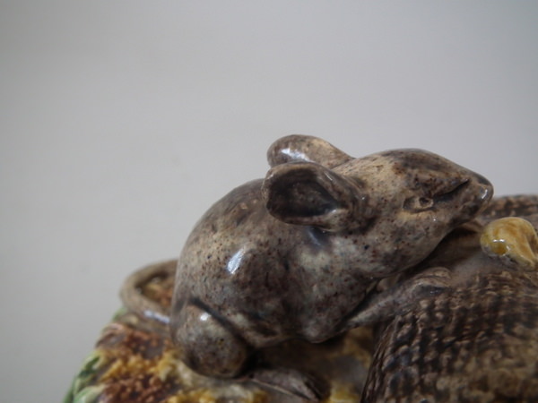 Majolica Palissy mouse with grain toothpick holder