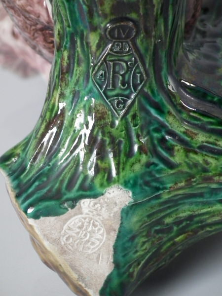The piece bears maker's marks for the Royal Worcester pottery. English diamond registration mark for the date 20/02/1872.