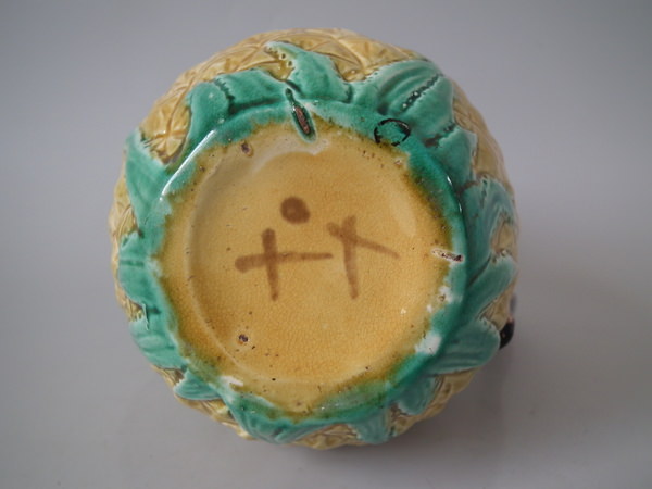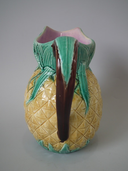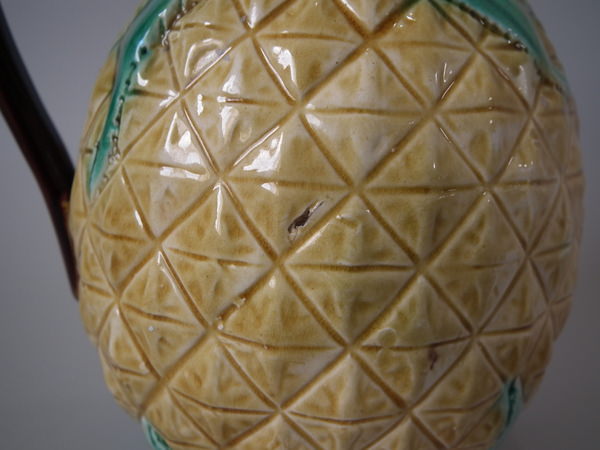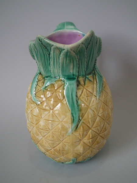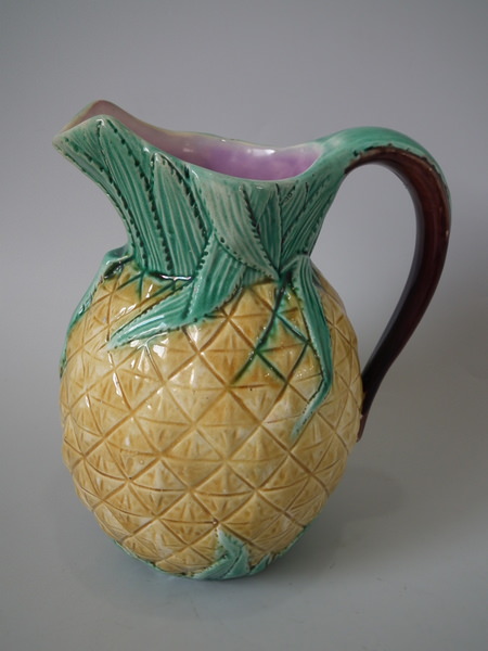Victorian, circa 1870. 6.9ins high, 5.5ins wide, 4.3ins depth. Majolica jug/pitcher which features a pineapple.