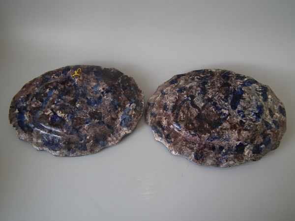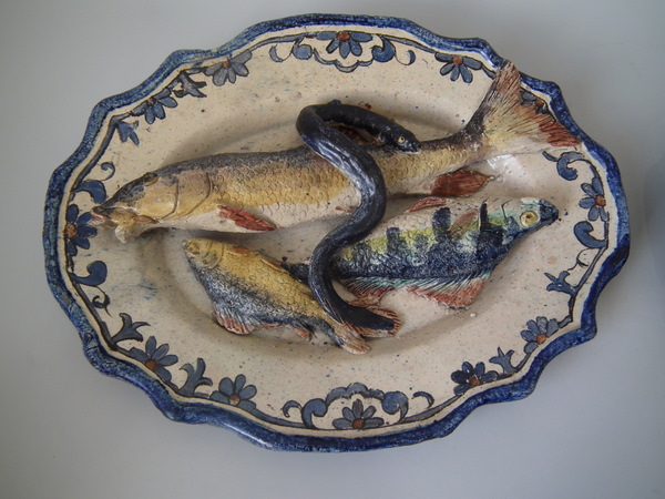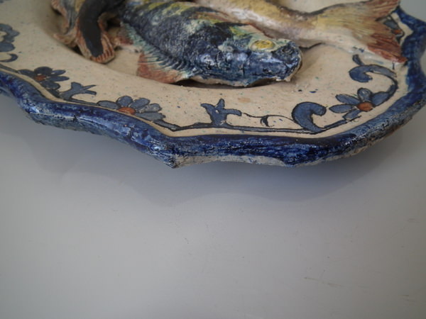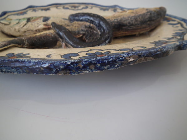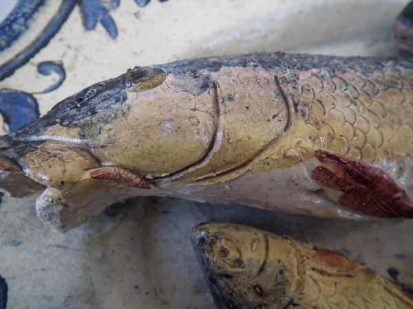 Pair Rare Landais Majolica Palissy fish platters