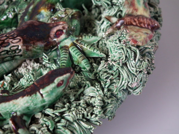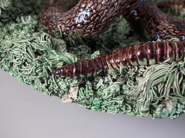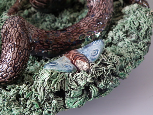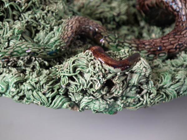 Cunha Majolica Palissy snake & lizard wall plate