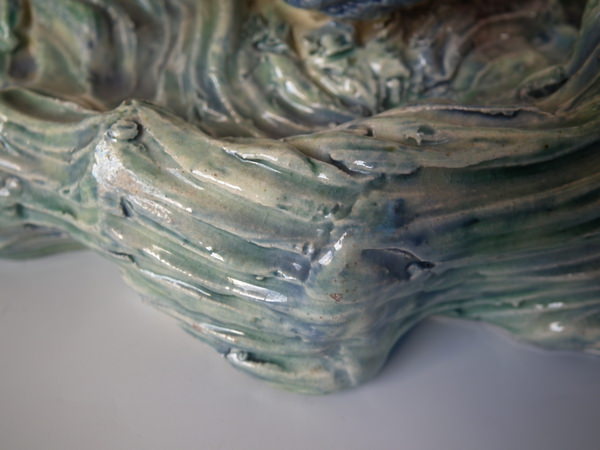 KILN EFFECTS: flecks of stray coloured glaze to the putti.
