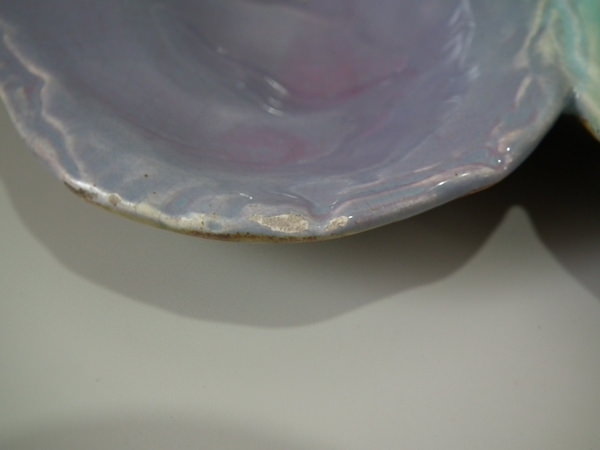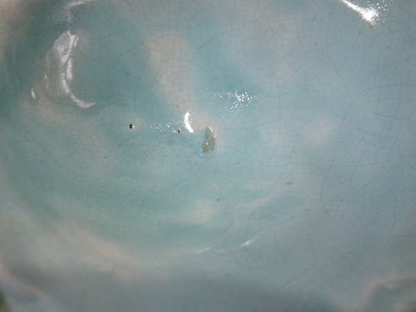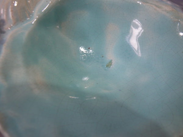 kiln detritus caught in the glaze to one of the shells.