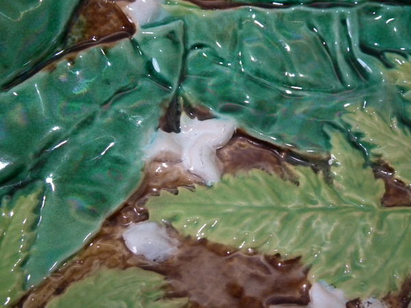 Majolica fern leaf and flower platter