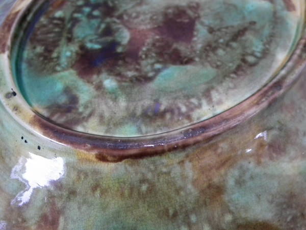 KILN EFFECTS: kiln grit caught in the glaze to the foot rim.