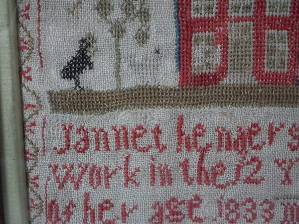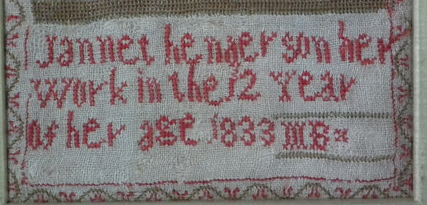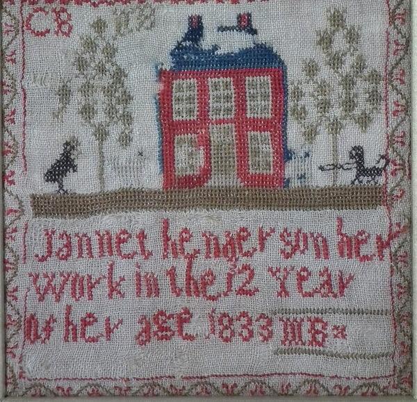 Signed and dated 'Jannet henderson her Work in the 12 Year of her age 1833'.