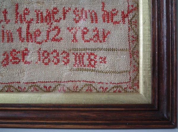 William IV, dated 1833. 15.25ins by 7.5ins wide. 1833 House Sampler by Jannet Henderson.