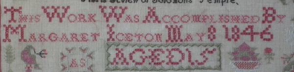 Signed and dated 'THIS WORK WAS ACCOMPLISHED BY MARGARET ICETON MAY 8 1846 AGED 15'.