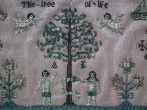 A wonderful set of motifs, including Adam & Eve standing either side of the tree of life with a snake coiled around its trunk,