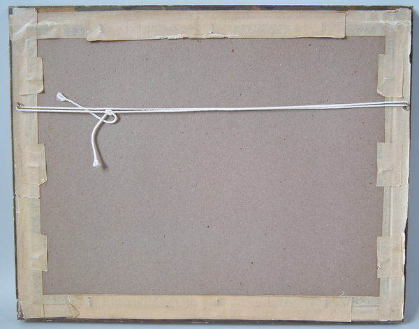 Loose mounted over pink satin-like material and card backing.