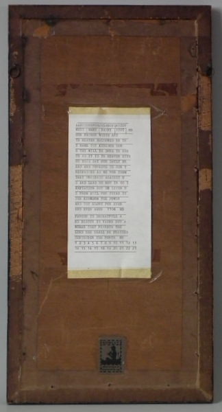 Framed in an old wood frame with glass. Stitched to card with wood backing.