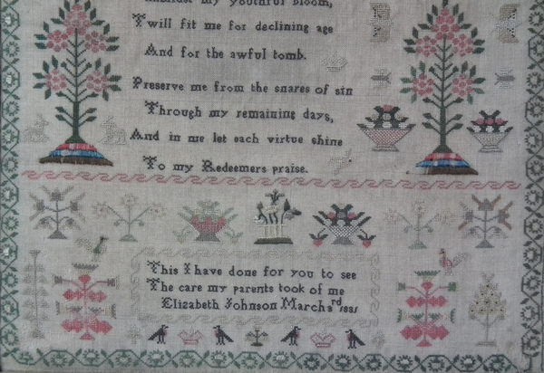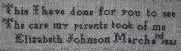 Signed and dated 'This I have done for you to see The care my parents took of me Elizabeth Johnson March 3rd 1831'.