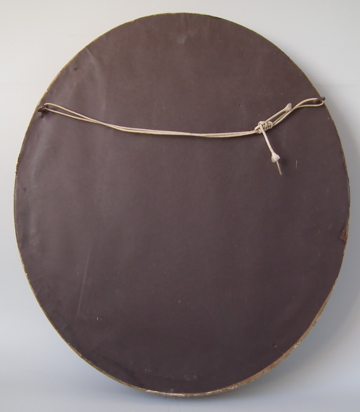 Fixed to a wood stretcher frame with paper backing.
