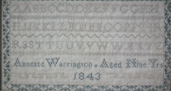 'Annette Warrington. Aged Nine Yrs 1843'.