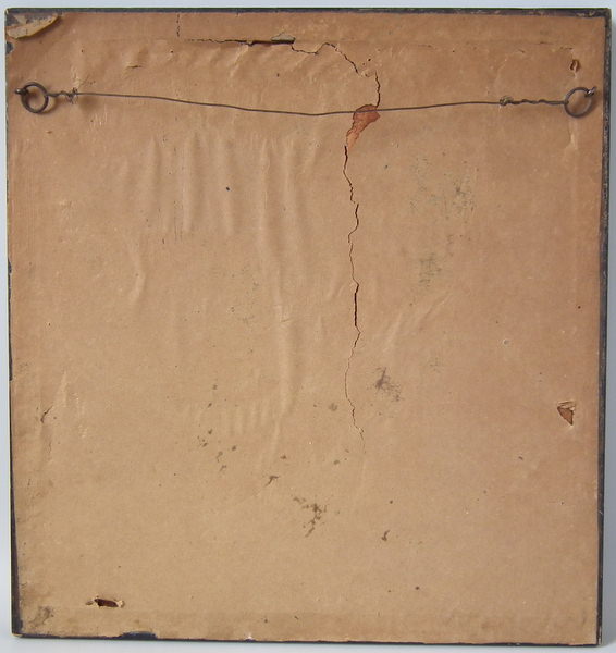 Fixed to board with wood and brown paper backing.
