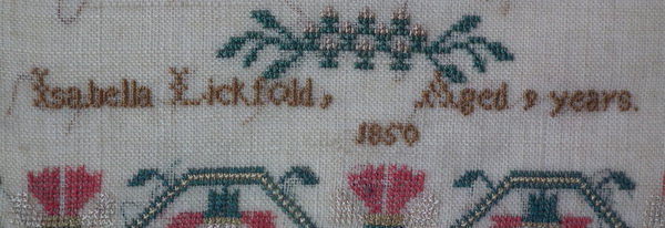Signed and dated 'Isabella Lickfold, Aged 9 years 1850'.