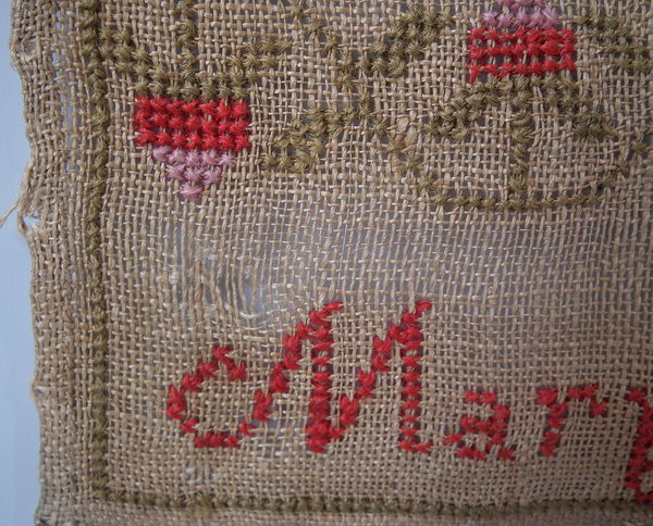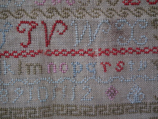 Some stitch losses to the border, divider lines, the date and letters/numbers.