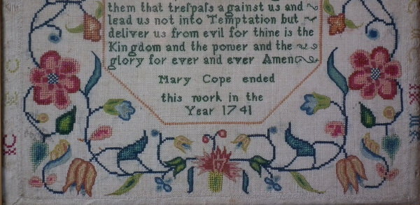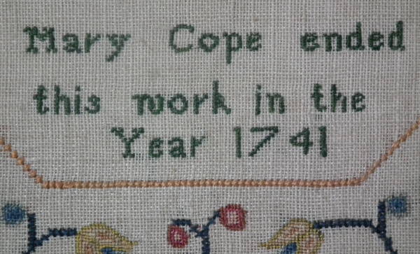 Signed and dated 'Mary Cope ended this work in the Year 1741'.