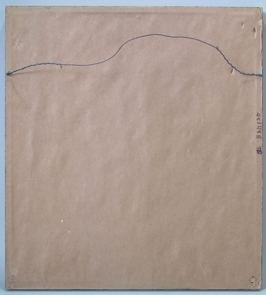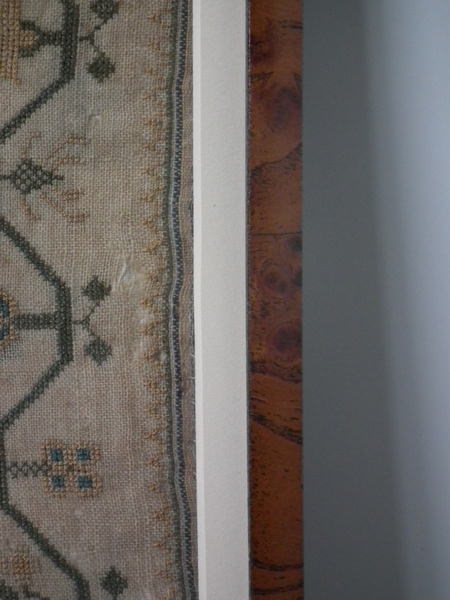 Stitched to linen with mountcard surround and card and brown paper backing.