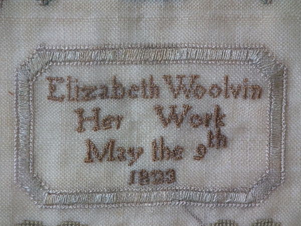 Signed and dated 'Elizabeth Woolvin Her Work May the 9th 1823'.