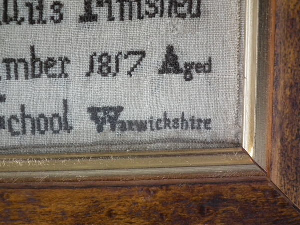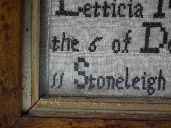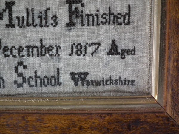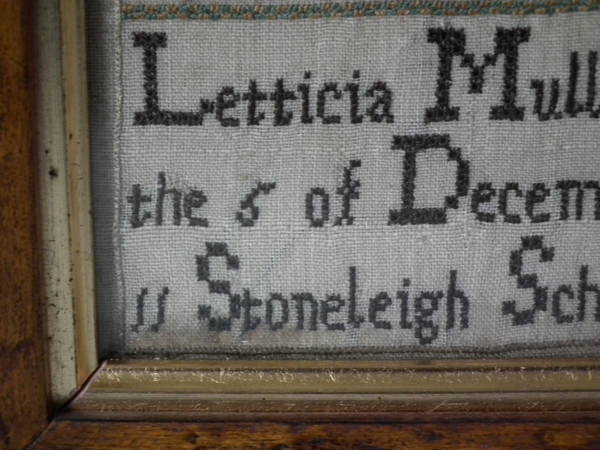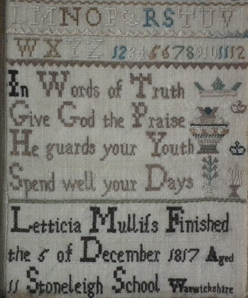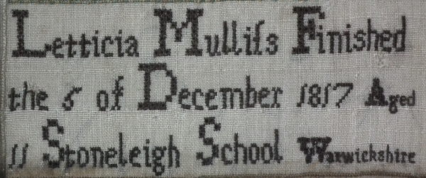 'Letticia Mullifs Finished the 5 of December 1817 Aged 11 Stoneleigh School Warwickshire'.