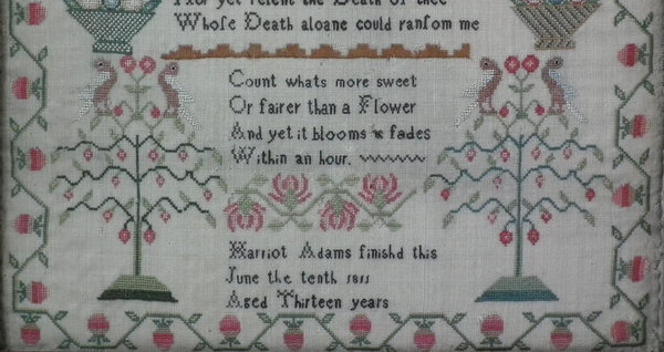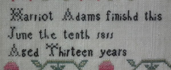 'Harriot Adams finishd this June the tenth 1811 Aged Thirteen years'.
