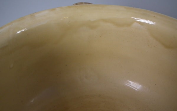 KILN EFFECTS: glaze pops and kiln soot caught in the glaze to the exterior and handle;