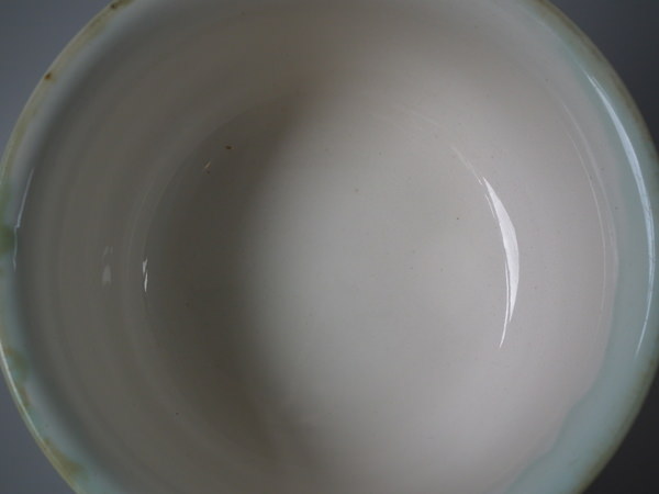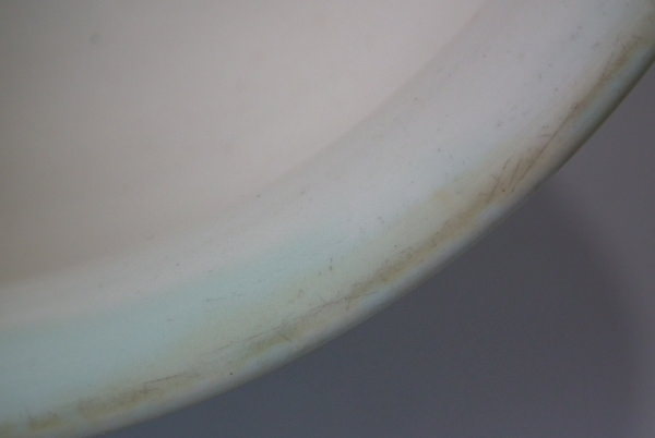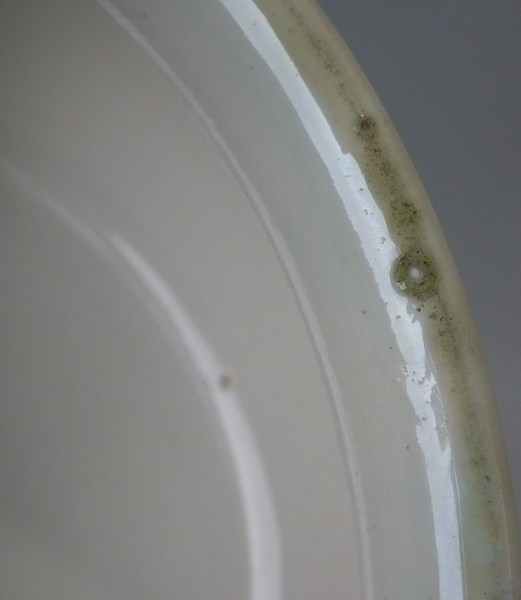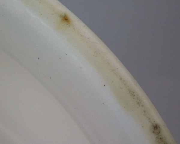 KILN EFFECTS: glaze pop and kiln soot caught in the glaze to the rim.