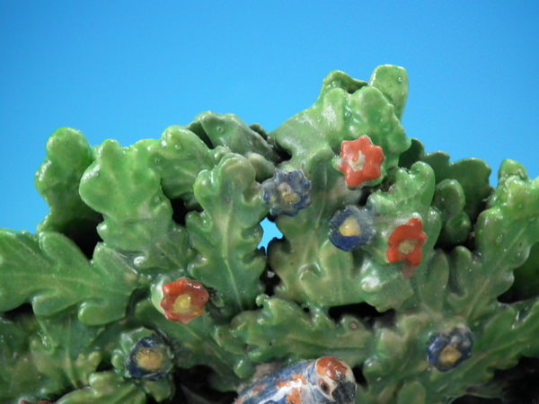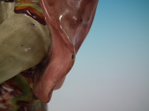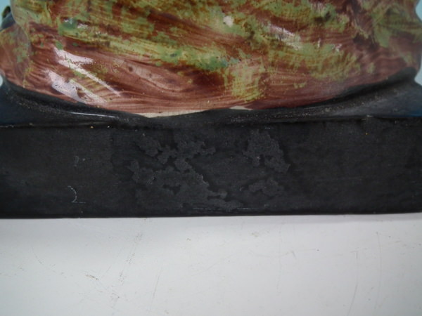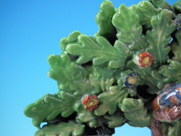 Multi-coloured version. Decorated 'in the round' - decoration to front and reverse. Vent hole to the underside.