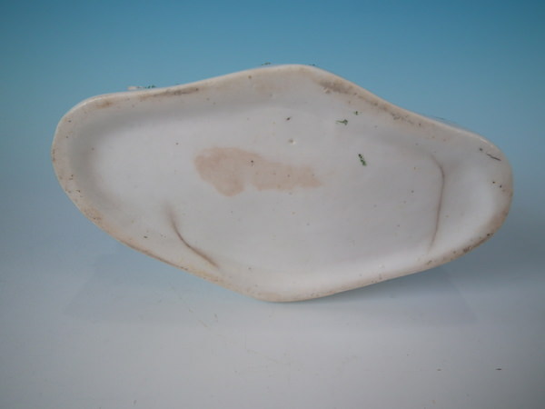 Victorian, circa 1860. 4.7ins high, 5.5ins wide, 3.1ins depth. Staffordshire spill vase which features swans and cygnets, resting on a shaped base.