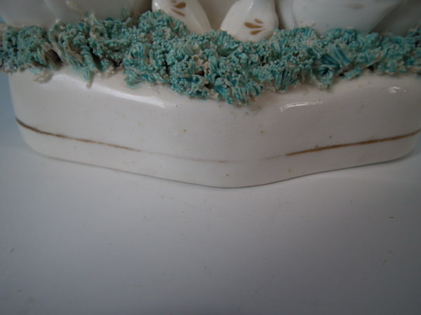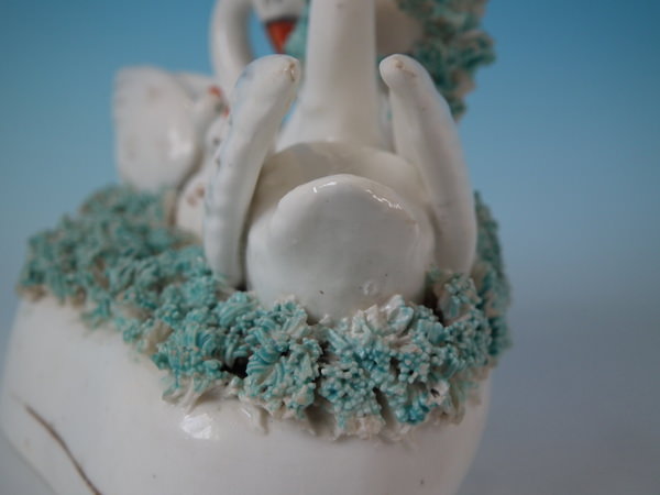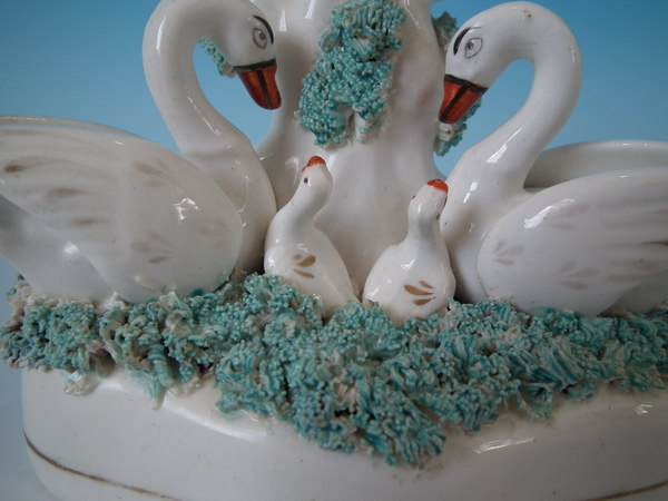Staffordshire swans & cygnets spill vase