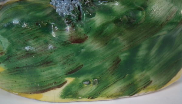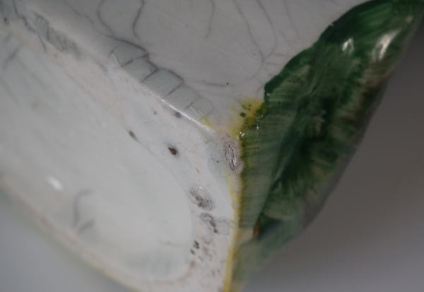 Generally good. Chip to shredded clay to roof edge and one to the lower base edge at the side.