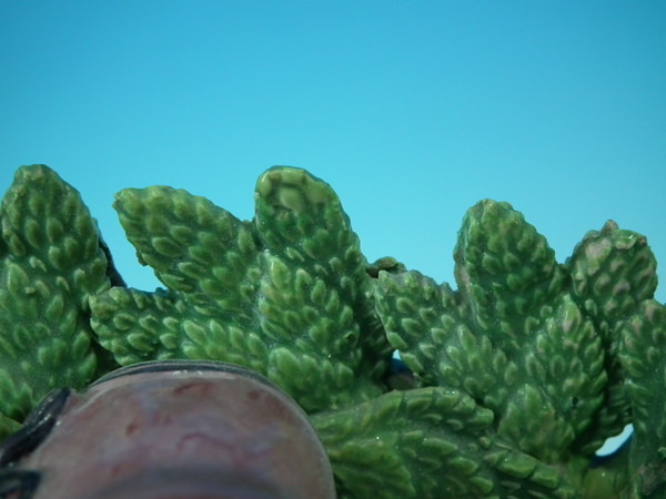 Some flakes to bocage and leaves on plant.