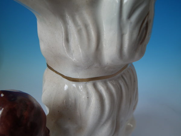 KILN EFFECTS: kiln detritus caught in the glaze to the top of the left ear;