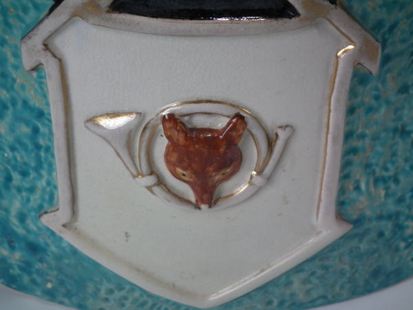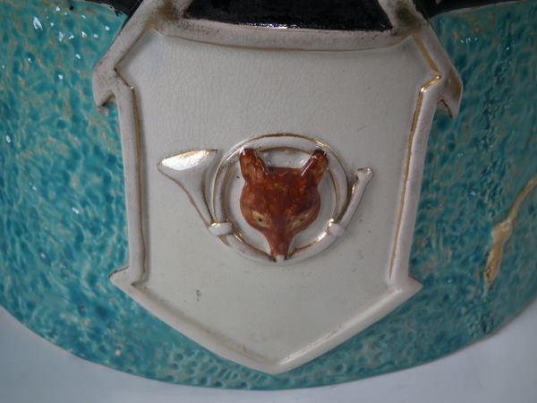 decorated with a horse, whip and other hunting paraphernalia, stood directly on the ground, no base.