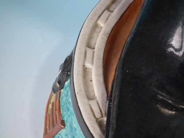 Multi-coloured version. Bright gilt base line. Decorated 'in the round' - decoration to front and reverse.