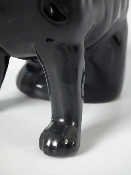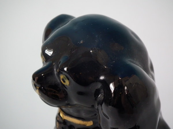 Left facing: Good. No restoration. Tiny flake to top of dog's head.